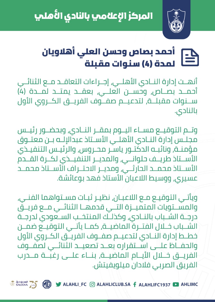 النادي الأهلي السعودي On Twitter أحمد بصاص وحسن العلي أهلاويان لمدة 4 سنوات مقبلة الأهلي