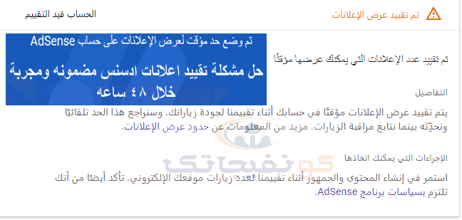 حل مشكلة تم تقييد عدد الاعلانات التي يمكنك عرضها علي موقعك ادسنس 2020